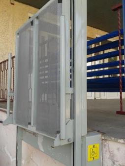 Вход в здание школы оборудован подъемником, есть кнопка вызова, широкая входная дверь со специальными табличками, напольная тактильная плитка, специально оборудованный туалет на1-м этаже.